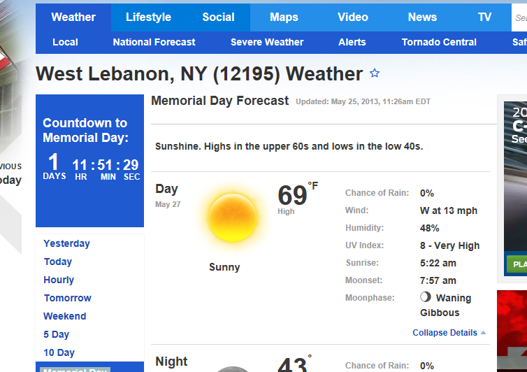 Musclepalooza Forcast - Memorial Day 27 May 2013