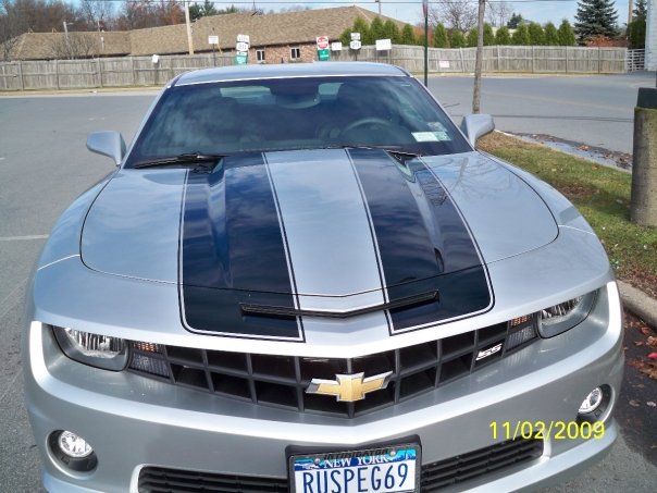 Peg's Camaro's front stripe